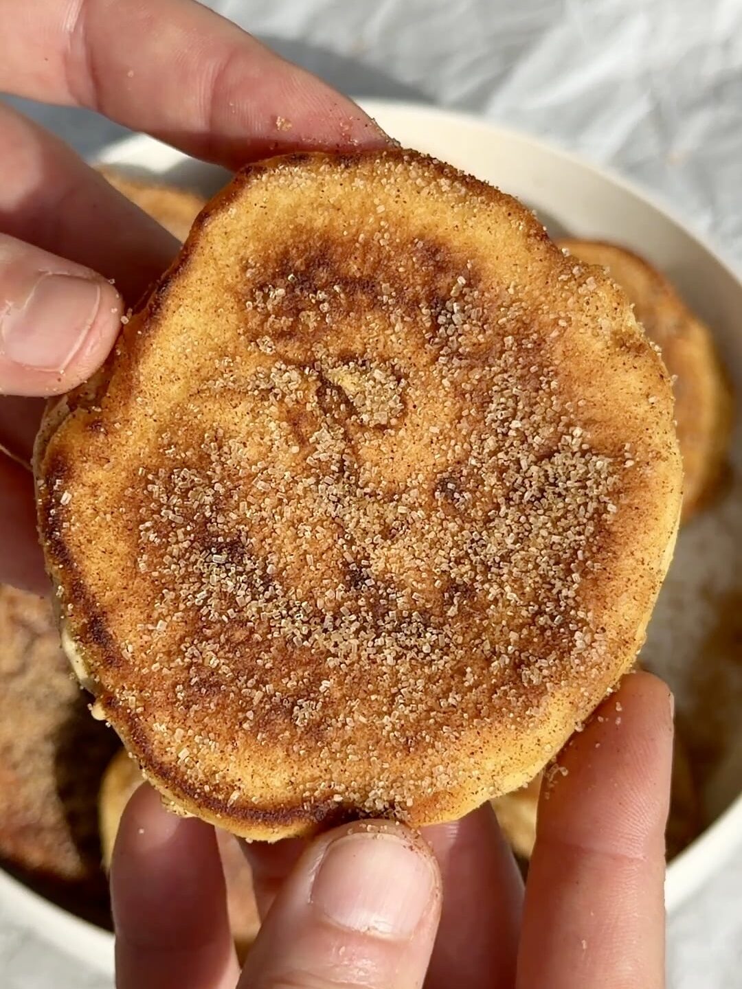 - Drain on paper towels briefly, then toss the warm rings in cinnamon sugar right away.